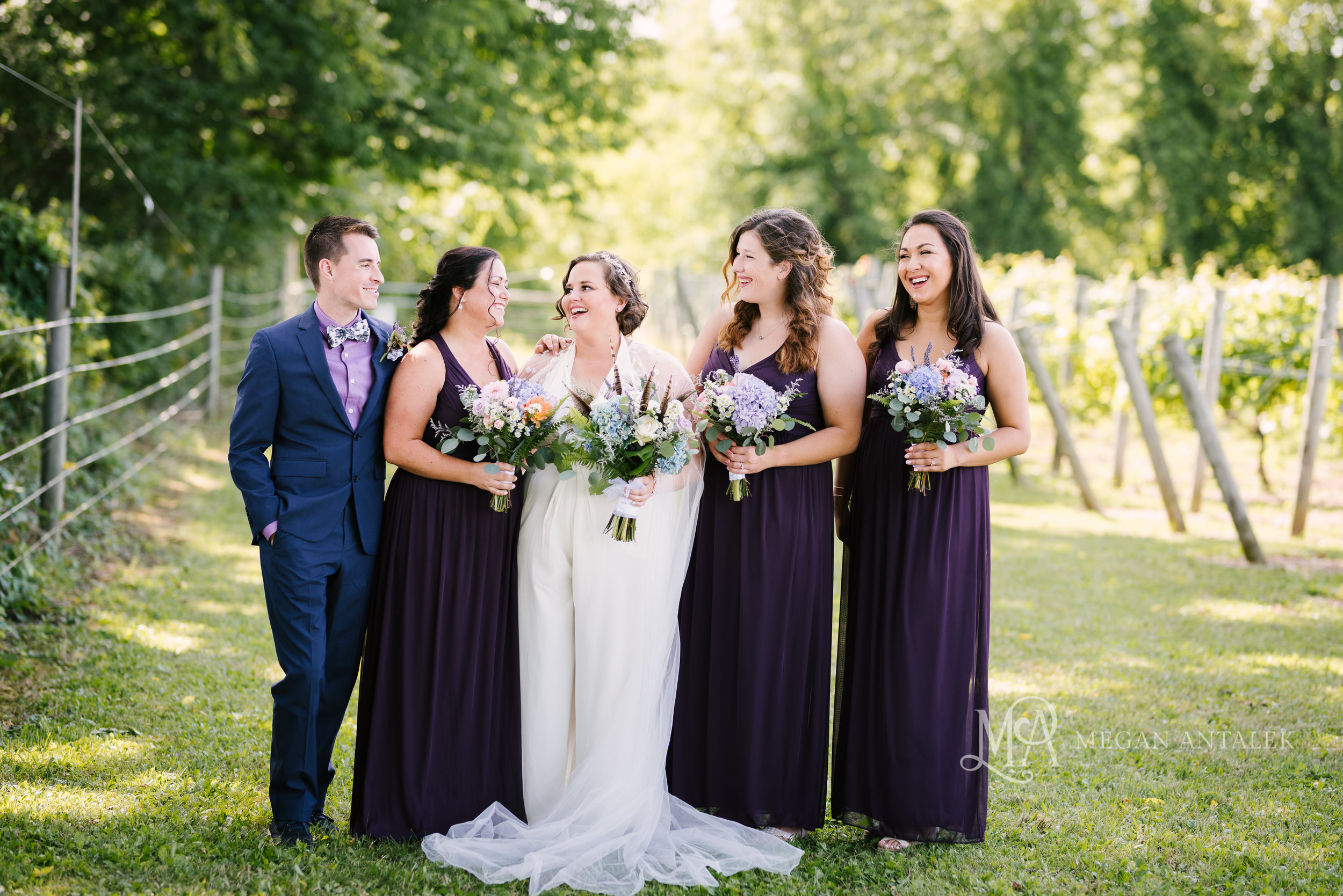 Their wedding party looked stunning with alternating purples, blues and the most gorgeous wedding bouquets! The vineyard at Deer Run Winery in Geneseo, NY has beautiful diffused lighting, it was every photographer’s dream. I always grab my couples during sunset to catch a few more portraits but we didn’t really have a sunset, we had dark rolling clouds instead. MAN, it made for some beautiful photos. Also….Alicia’s one piece had a cape AND pockets so, I was basically freaking out.