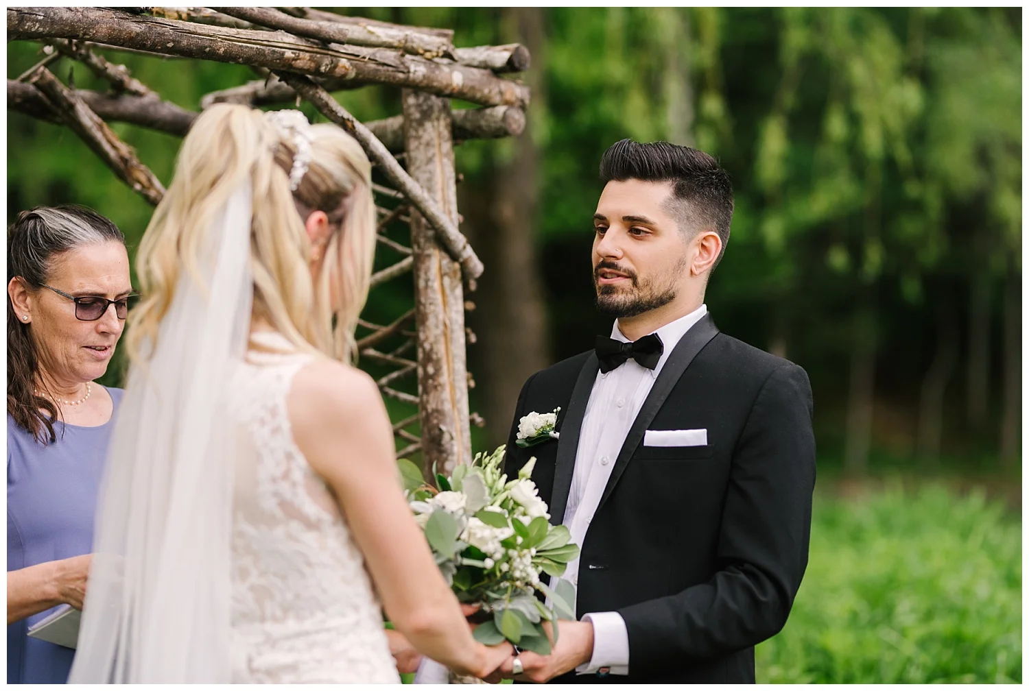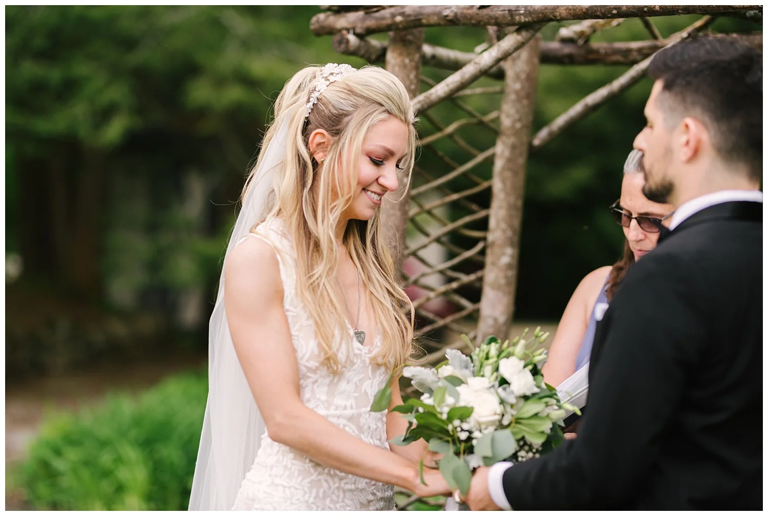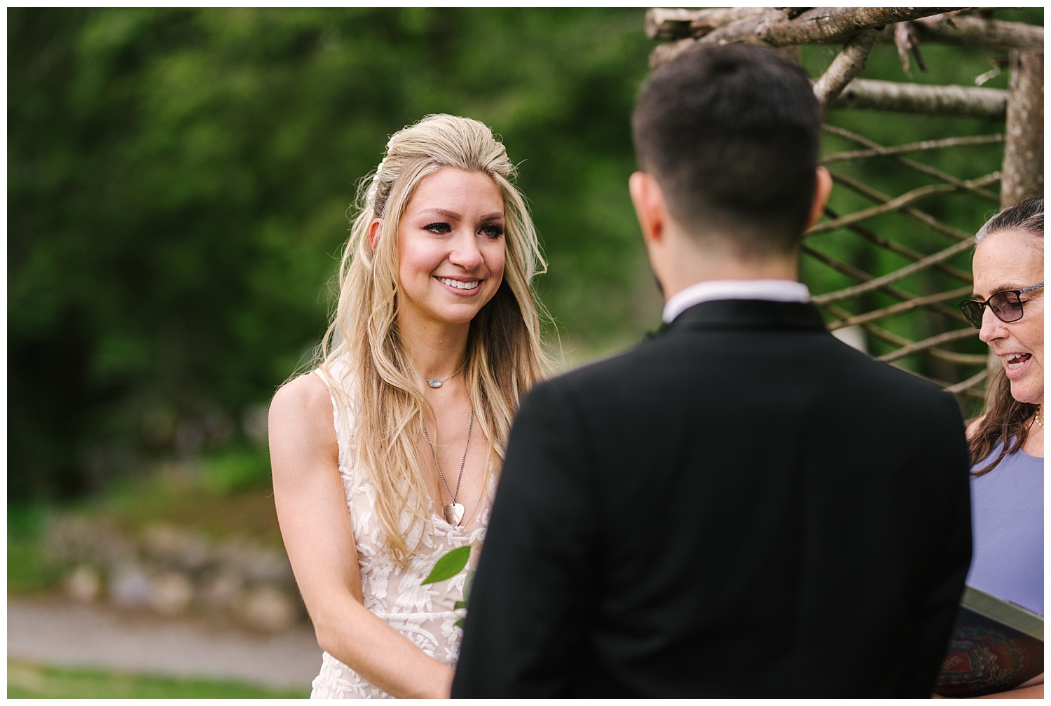 We all took a hike up to Friends Lake which is about 20 minutes from Lake George in the Adirondacks. Greg and Crystal stayed at the Friends Lake Inn which is a beautiful resort and the perfect spot for an elopement. In fact, Friends Lake Inn has had weddings on their property for over 100 years. They even have some of those ancient photos hanging up in the dining room. This venue has a super cute backyard with a wooden arbor for the ceremony, a pond with a wooden bridge for photos, and a cute willow tree.