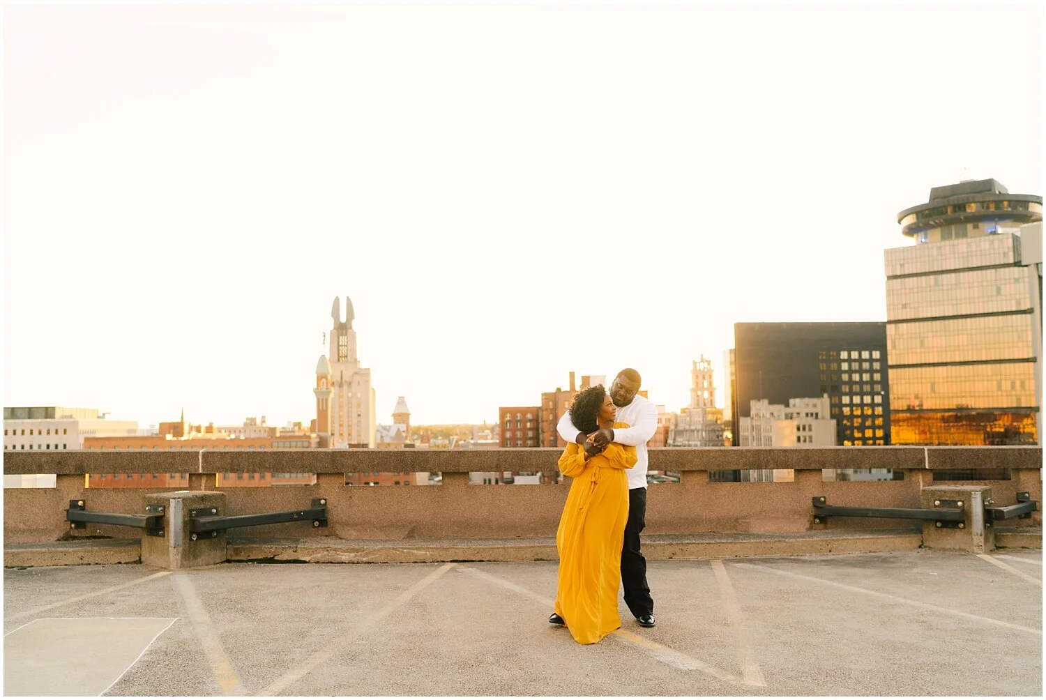 Essence and Brandon really wanted an urban look and feel for their engagement session. We’ve photographed on downtown Rochester, NY parking garages before but this time we added a little twist!